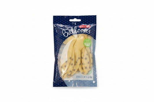 Krystalklar ballon med sølv stjerner - 6 stk - 30cm - ekstra stærk ballon